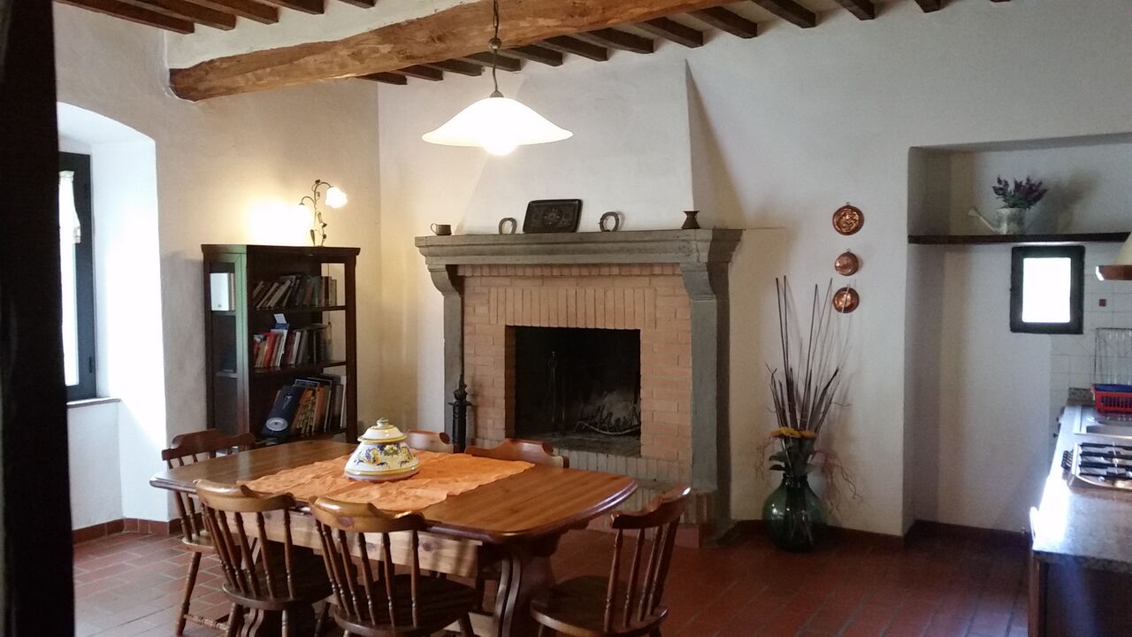 A disposizione degli ospiti: 2 saloni con camino, 3 cucine attrezzate ( di cui una a pian terreno adiacente al portico e al barbecue ), 6 camere da letto ( fino a 16 posti letto )